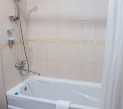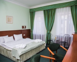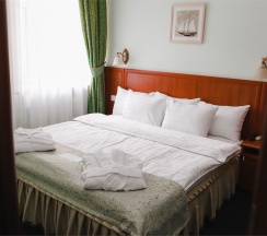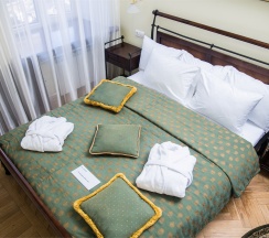 Двухкомнатный номер на третьем этаже гостиницы подойдет для длительного проживания или для семейного размещения. Номер оснащен кондиционером, двумя телевизорами с кабельным телевидением, телефонов с междугородней и международной связью. К услугам гостей также большая ванная комната, пушистый махровый халат и тапочки.