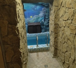 Жил ,по сути ,в бане. Номер состоял из: туалетной комнаты, большой прихожей со шкафом, большого "зала" со столом, стульями, комнаты с кроватью. За отдельной дверью находилась баня, 2 душа и бассейн. Насчёт бассейна сказали, что он полностью в моем распоряжении, так что мог в нем плавать. В номере также был чайник.