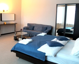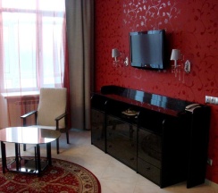 Просторный однокомнатный дизайнерский номер с оригинальной мебелью.