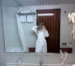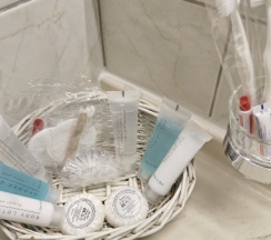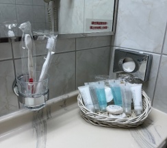 В номере есть все необходимые туалетные принадлежности, полотенца, был один халат. Кружки с чаем и сахаром.