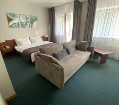 В приятном восторге от этого места. Чистые современные номера. Хоть и были всего пять часов, но успели выспаться, т к удобная постель и классные подушки. Все есть, мыльные принадлежности, уютные халаты. Выходишь на балкон , а вокруг природа, лес…. Обязательно вернемся отдохнуть от городской суеты и полностью насладиться местом