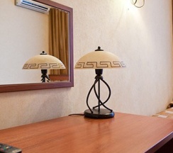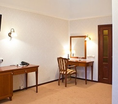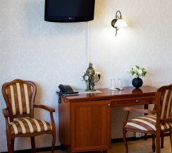 В каждом номере — кровать с ортопедическим матрасом размера "king-size", гипоаллергенное белье, письменный стол, стулья, телевизор с плоским экраном, телефон, ванная комната с душевой кабиной, фен,холодильник с мини-баром, кондиционер, сейф, косметические средства, просторный шкаф для одежды, электронные замки, ковровое покрытие.