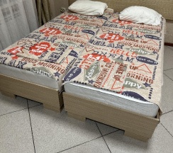 Не понравилось: Немного напрягло то,что отключали воду из-за ремонта.И ещё был один комплект полотенец и гигиенических средств на двоих.