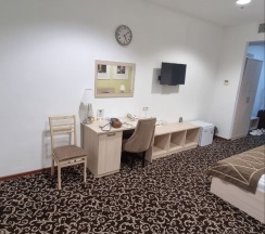 Немного нехатает ремонта, все пошарпанное, особенной в ванной. Холодильник шумит, мешает спать, пришлось отключить. Пульт от ТВ не хотел работать, весь грязный и жирный (купите чехлы для пультов). И матрац оказался жестким, продавленным, пружины в бока впиваются уже. Завтраки хорошие, мне вполне хватало. А так в общем не плохо, убираются, постель чистая, вода в номере питьевая, чайник, чай, фен, шампунь, только нет зубного набора, он платно.