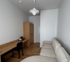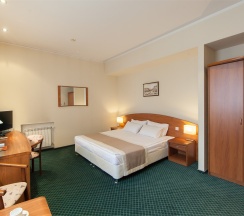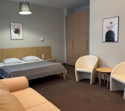 Однокомнатный номер комфортный для размещения одного или двух гостей. Номера представлены в нескольких цветовых решениях и с разными вариантами кроватей (большая двуспальная или две односпальные).
