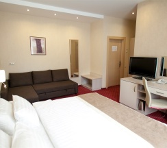 В номере: холодильник, кондиционер, сейф, телевизор, телефон, рабочая зона с бесплатным WI-FI, собственный санузел, фен, туалетно-косметические принадлежности.