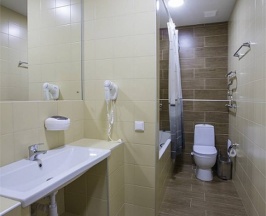 Ванная комната оснащена душевой кабиной, раковиной, WC, феном.