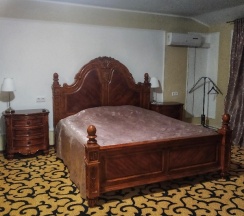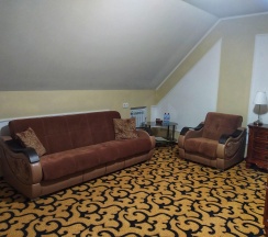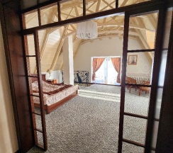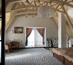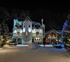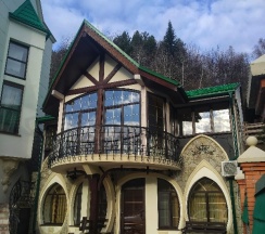 Мы два раза в год приезжаем теперь в этот отель, стилизованый замок, были в июне 2025г. номера так же восхищают обьемом, высотой потолков, красивое кованное железо, лепнина, люстры, красиво. Балкон просторный. Камин конечно сказочный, вечерами разжигали 100р стоит 5 хороших березовых полешек. Апартаменты упакованы, белоснежное белье и полотенца, халаты, тапочки, ( чай, сахар, вода, быт хим. приветственный только). В этом году в номере заменили новый стол и стулья, чайник, сковороду. Большое спасибо за обновления. Хотелось бы, еще заменить ножы. Удобный выход из номера на мангальную зону, спасибо отдельное за раковину в монгальной, а качеля на ней вечерами любовались звездами. В номере 2 выхода на разные стороны. Туалетные комнаты на 2 этажах, биде, унитаз, ванна, душ, гардеробная. На втором этаже большая кровать, телевизор, журнальный столик, стулья. На первом кухня, отделена зеркальными раздвижными дверями, большой стол со стульями как в замке, угловой диван, телевизор, камин. К мангальной зоне примыкает лес-гора, аромат, чистый воздух. Дети до 7 лет бесплатно, на них выдают постельное, полотенце, чай, воду. Интерьер, мебель конечно уже поизносились, требует обновления, но как старинный замок сочитается. Радует небольшая сауна на первом этаже, 1 час 1т.р. Очень жаркая, можно поддавать на камни, выдают простыни, тапочки, гель, шампунь, кондиционер, мыло и водичку. Сам отель удачно расположен в центре курортной зоны, в пешей доступности все, детям удобно гулять, есть своя территория, парковка, на ночь закрывают, все под наблюдением. Тихо и чисто. Белокуриха с очень красивой курортной зоной, можно переходить из одной зоны в другую, все отели связаны как единое парковое пространство, все в цветах и зелени, постоянные развлекательные программы, музыка, бассейны и все рядом, можешь всем пользоваться. Детям раздолье, нет мошек и комаров, красивая п