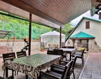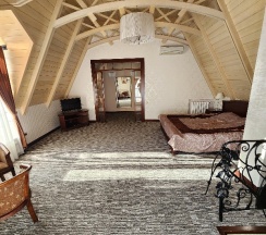 Первые 2 дня жили в люксе с камином и выходом на зону барбекю, романтический ужин удался, все для этого в номере есть, посуда, атмосфера, живой огонь.