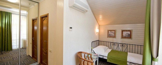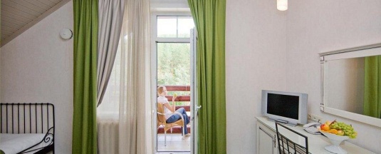Прекрасный отель. Расположен в уединенном месте, на территории санатория Россия. Тихо, спокойно. Сплошное умиротворение! Отмечу отличную инфраструктуру рядом