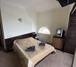 Однокомнатный номер с двухспальной кроватью с включённым завтраком! В номере журнальный столик, шкаф для одежды, мини-холодильник, чайник, кондиционер, ТВ, WI-FI, чайный сервиз, полотенца, тапочки, плечики для одежды, фен, средства личной гигиены, душ. На территории отеля расположена баня "Богатырский дух". Так же есть бесплатная парковка с видеонаблюдением.