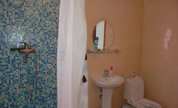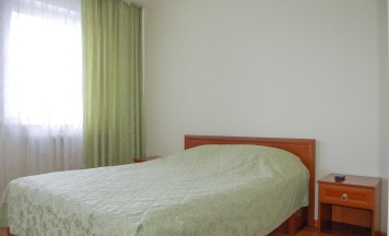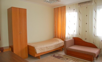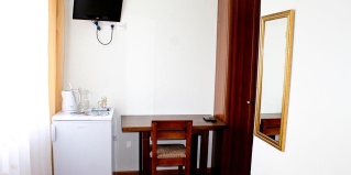 В номере: одна полутороспальная кровать, телевизор, холодильник, чайник, шкаф, прикроватные тумбочки, кондиционер, WC, душ.