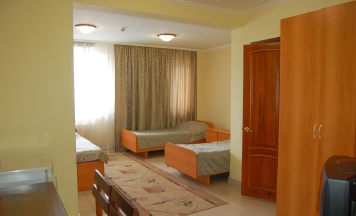 В номере: одна двуспальная кровать, две односпальные кровати, телевизор, холодильник, чайник, шкаф, прикроватные тумбочки, кондиционер, WC, душ.