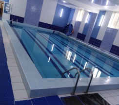 В крытом бассейне маленькие раздевалки, буквально на 4 человека комнатка с крючками на стенах. За шторкой от раздевалки душ, поэтому в раздевалке всегда мокро.