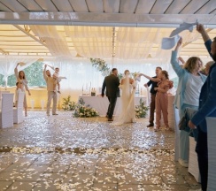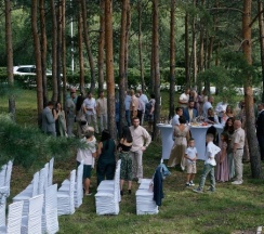 Красивые виды; веранда, где не жарко летом и где можно уместить до 100 гостей (у нас было около 70); территория, где можно провести выездную церемонию бракосочетания, погулять гостям и сделать красивые снимки; профессиональный персонал, который был всегда на связи. Гости оставляли отзывы о вкусной кухне. Мы остались очень довольны!