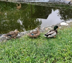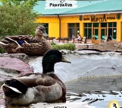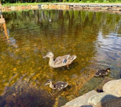 Наконец-то отремонтировали пруд, теперь утке с утятами там в кайф. Бултыхаются и ныряют вверх жопками целый день. Умилительно!