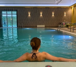 19,1 на двоих с завтраком и обедом в выходной. Круто, что в сутки входят оба бассейна (крытый и выплывной), сауна и хаммам. Это удовольствие! Но очень важно отметить, что нет человека, который бы запрещал детям прыгать с бортиков, строить горки из лежаков и следить за порядком. Шли свадьбы, детей было много, контроля нет. Хотя, конечно, мне сложно было обломить кайф от пребывания в этой спа-зоне. Истинный восторг - это дико прогревшись в сауне, пойти в выплывной бассейн на улице, когда ещё и прохладная погода. И в этом темпе затусить на несколько часов. Шик и полное расслабление ♥️! Кстати, сделайте вайфай в бассейне, будет еще лучше. За лежаки деньги не берут, слава Богу!