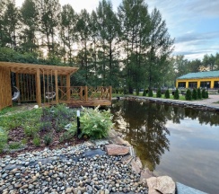 Понравилось всё! Сервис на высоте ! Территория красивая, достаточно большая! Пруд с утками ухоженный . Нет вопросов к еде , всего хватало , хороший выбор качественных блюд ,постоянно ходили сытыми , не было мыслей чтобы делать барбекю . Бассейн чистый , теплый .