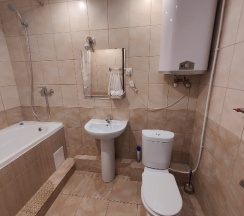 Довольно большие номера, с ванной в санузле и всеми одноразовыми принадлежностями (гель для душа, шампунь, зубной набор, мыло) даже в стандартном номере. Кондиционер, телевизор, обогреватель. Плотные занавески на окнах. Комфортный, плотный матрас на кровати. WiFi- по номеру телефона. Есть возможность снять номер со скидкой, если меньше суток будешь проживать. В общем- рекомендую!