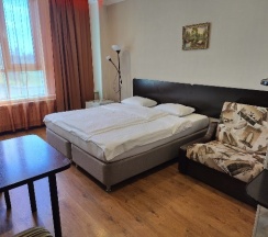 Отель очень понравился! На ресепшене быстро оформили и рассказали всю необходимую информацию. Останавливались на одну ночь. Есть возможность оплатить за 12 часов. Номер просто отличный! Есть всё необходимое: кондиционер, телевизор, холодильник.,Wi-Fi. В ванной комнате одноразовые принадлежности (гель для душа, шампунь, мыло и т.д.). Для приготовления и приема пищи есть отдельная комната со всем необходимым оборудованием! Внизу находится кафе. Возле отеля большая парковка, а недалеко (~50 метров) заправка Газаромнефть. Всем рекомендуем!