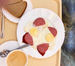 Чистый семейный номер, соответствует описанию. Белоснежное белье, чайник, тапочки, гигиенический набор. В кафе заказывали яичницу, вкусно. Рекомендую!