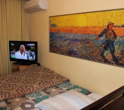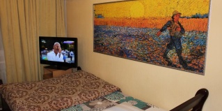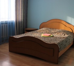 Оборудование номера: удобная кровать, тумба прикроватная, журнальный столик, стул, вешалка для одежды, пластиковые стеклопакеты с москитной сеткой, кондиционер, холодильник