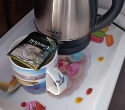 В номере все комфортно набор для чая конфетки с чайником и чай, брали номер с душем, пару дней переночевать самое то."