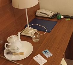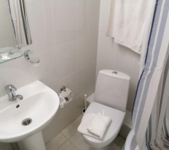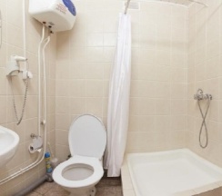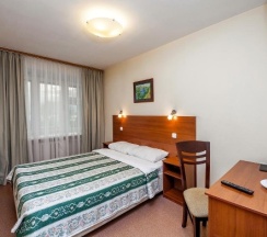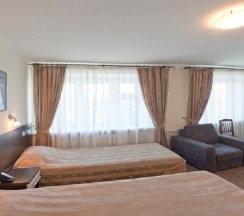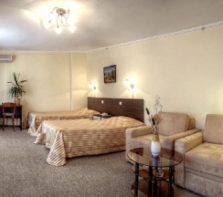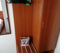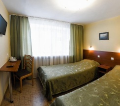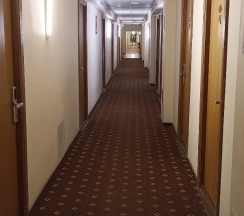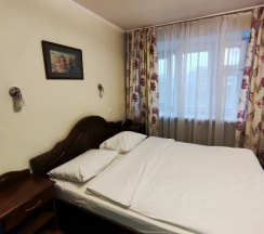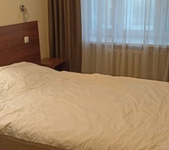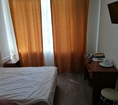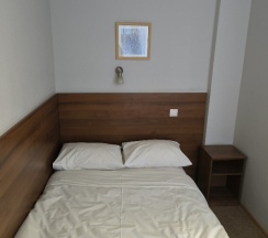 Жили в двух одноместных номерах - эконом и улучшенный. В улучшенном, как в 3 звёздном отеле есть кондиционер, фен, холодильник, широкая кровать, диванчик ( раскладывается для ребёнка), журнальный столик, телевизор, в туалетной комнате положили одноразовые шампунь и мыло на все дни. В экономе телевизор, вентилятор, одноразовое мыло. Но в целом это для эконома 2 звёздной гостиницы - нормально. Общее впечатление хорошее, правда, общий косметический ремонт бы не помешал - немного выглядит усталым.
