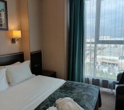 Уборка номера ежедневная. Всё необходимое есть. Вид из окна потрясающий и этот ещё не панорамное окно. Всё достопримечательности видно.