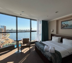 Наслышанные восторженными отзывами друзей, приятелей и знакомых решили заселиться в данный отель. Все хорошо и расположение и развлечения и замечательное колесо обозрения рядом, но к сожалению впечатление испортили обслуживающий персонал, такие как администраторы на ресепшене и официанты на завтраке. Мы с семьей очень лояльно и понимающе относимся к персоналу, но тут нас встретили будто бы мы приехали не в отель, а конкретно к кому то домой и нам там не рады. Просто покер фейс, никакого дружелюбия просто стандартные здрасьте и вот это это и это. Ну блин никому не надо пятки лизать, но можно просто быть дружелюбнее. Чувство было, спасибо что к черту не послали, не приятно. А в целом хороший отель, вкусные завтраки. Вот румсервис хотелось бы отметить, вообще душки, очень вежливые и приятные
