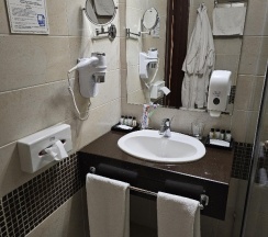 Но ресепшен… всегда с недовольным лицом, перепутали наше время в сауне (ее надо бронировать заранее). В итоге уборщицы зашли к нам в сауну, когда мы мылись в душе и с открытой дверью спорили с нами, что им надо убираться и сейчас не наше время. Потом нам позвонил ресепшен и тоже спорили, что мы бронировали другое время (хотя перед посещением сауны надо спуститься к ним на ресепшен вниз, взять ключи, подписать договор, назвать свой номер, что уже исключает возможность перепутать бронь). В итоге после споров сказали «сейчас посмотрим», и оказалось, что это они все перепутали и мы пошли в сауну в правильное время. Хотя персонал мог бы это посмотреть и без споров по телефону и не отправляя к нам (понятно в каком виде в душе) персонал на уборку.