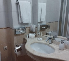 Очень нравится этот отель своей ценой, комфортом, тишиной, любезным персоналом, наличием охраняемой парковки, пп завтраками. Была в разных категориях, везде чисто, аккуратно, есть шампунь-гель для душа с ароматом мандарина, кондиционер для волос и необходимый гигиенический набор. Наличие кофе-машины и чайного набора. Полотенца и халаты чистые, белые. На завтраках в разные дни бывает отварная грудка или бедро куриное(я выбирала мясо, не сосиски) так же, всегда есть фрукты: я выбирала арбуз, дыню и персик. Если разбирали, то просила, чтоб принесли новые порции, всегда приносят. Есть каши на молоке и воде, запеканка, омлет(очень вкусный), глазунья, супы, овощи, маслины, оливки, йогурты, вкусняшки, сухофрукты, чай, кофе.