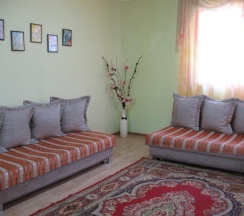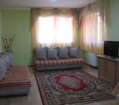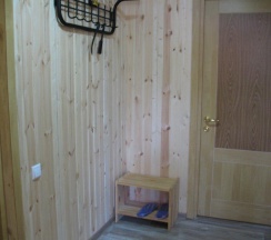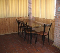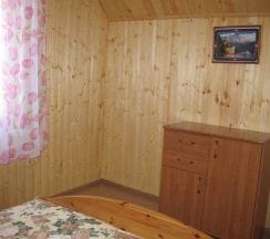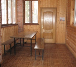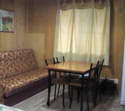 Первое, куда вы попадете при входе в дом, — это большая вместительная веранда. Далее вас ожидает светлая уютная гостиная, совмещенная с кухней, где с комфортом может расположиться до 14 человек. Среди обстановки особо стоит отметить два вместительных раскладных дивана. На кухне есть все необходимое, включая холодильник, микроволновую печь, чайник и комплект посуды на 12 персон.
