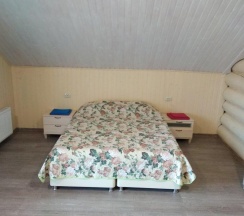 На втором этаже располагаются две небольшие комнаты с двумя двуспальными кроватями, большая спальня с двумя двуспальными кроватями и верандой, а также современный санузел.
