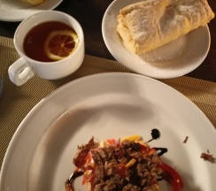 Ресторан с отличной кухней, разнообразное меню, вкусно. Обслуживание в целом хорошее, персонал приветливый. Из вечерних развлечений ресторан работающий только до 23:00, это минус. Из пожеланий- хотелось что бы ресторан работал подольше и еще бы с музыкальном сопровождением.
