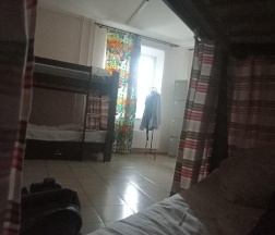 Для такого состояния хостела цена высоковата. За 6 местный номер 550р в сутки, с вай фаем, чаем, кофе, но без завтрака. Остановки и магазины рядом. К моменту моего там прибывания (конец сентября) недостатки не были устранены и "усталость" хостела никуда не делась)) Еще мне не повезло с соседями. Сначала почти до 12 ночи 6 мужчин громко смотрели телевизор, а на следующий вечер 2 пьяных мужчин делали то же самое, при этом еще подпевали и что-то жарили. Запах от этого стоял больше суток. Планировка странная. Из своего номера что бы попасть в туалет или выйти из хостела надо пройти через кухню, в которой так же находится общая зона с ТВ, где частенько кто-то заседает. 2 туалета, один из которых совмещен с душевой. Места маловато. Зачем-то в нашем номере вместо одной двухъярусной кровати, стояло 2 односпалки. Лучше убрать эти кровати и тумбочки, и поставить к стене 3ю двухъярусную кровать, а у окна 6 табуреток и столик. Почему-то не влез чемодан под кровать, хотя в других хостелах вроде такие же кровати и проблем с этим не возникало. А из-за односпалок места свободного в номере нет и пришлось багаж поставить рядом со своим спальным местом. Не хватало мелочей типа крючка на кровати, рейлинга для полотенца, маленькой полочки с бортиками. Удобнее было бы пронумеровать спальные места и раздать постояльцам ключи от домофона, что бы администратор не бегал открывать каждому дверь. Так же хранение обуви было бы оптимизировано (выделить для каждого по ящечку, поставить их на стиллаж). Спальное белье с полотенцем лучше выдавать человеку перед заселением и полотенчики надо бы тоже обновить ;) Дизайн на любителя, но это не столь важно))) В целом чисто, очень порадовала душевая кабина без грибка и засоров. Мягкие матрасы, их целых 2)) Про кухню не могу ничего сказать, не пользовалась. Желаю ребятам сделать ремонт и добавить некоторые мелочи для удобства гостей. Процветания вам :)
