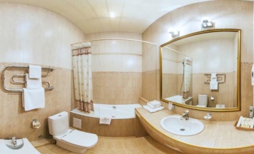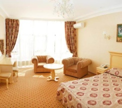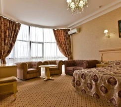 «Люкс» — это фешенебельный двухкомнатный номер, который создан специально для гостей, ценящих комфорт и роскошь! Обставленный элегантной мягкой мебелью, люкс разделен на гостиную и спальную комнаты.