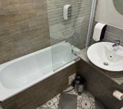 В номерах «улучшенный стандарт» всегда полноценные ванные. В «бюджетном» тоже у нас была ванная.