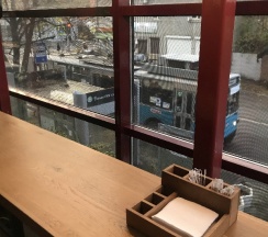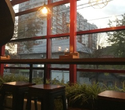 В минуте ходьбы от номера – круглосуточный «Магнит» (где есть отдел с готовой едой и где её можно разогреть). В 3ёх минутах ходьбы: круглосуточное кафе (при соседнем отеле) и напротив него ещё одно кафе «Очаг» (рядом с автомойкой, до 23:00 работает, с неплохой кухней и отличными завтраками).
