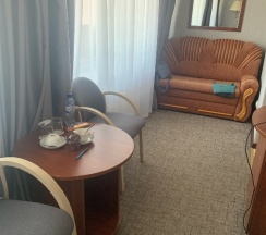 Приличная провинциальная гостиница. Номер категории стандарт бедноват. Категория бизнес совсем другое дело- есть всё для приятного отдыха. Единственный минус- бесцеремонные и шумные соседи на любом этаже. Завтраки без разносолов, но вполне сносные.