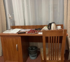 В целом неплохой отель, все хорошо, завтраки шведский стол, большая парковка. Проблемы только с охраной отеля - в 4 утра через ресепшен заказали такси, так автомобиль к отелю не пропустили (на ночь огораживают территорию), причем в довольно грубой форме без объяснения причин, хотя якобы сослались на присутствие губернатора!!! Где? В отеле? Ночью? Или в городе, где он и так постоянно присутствует...пришлось 200 метров под дождем с чемоданами идти до такси