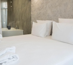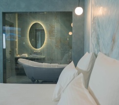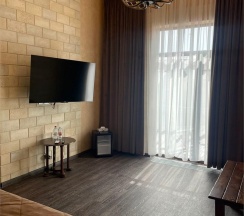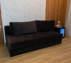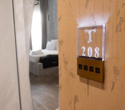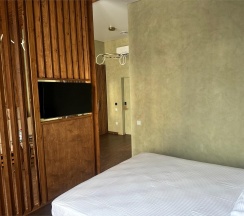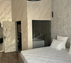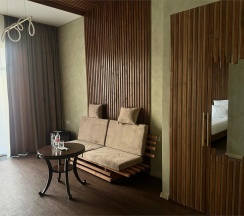 Авторский дизайн номера выполнен в изысканном современном стиле с применением экологичных материалов и рассчитан на комфортное проживание двух гостей. Здесь находится всё необходимое для прекрасного отдыха. Помимо широкой двуспальной кровати с ортопедическим матрасом и другой современной мебели, к услугам гостей SMART-TV, внутренний телефон и бесплатный Wi-Fi. Изюминка номера - "прозрачный санузел", который оснащен изысканной ванной, феном и высококачественным текстилем. Имеется гостевой диван (не раскладной).