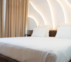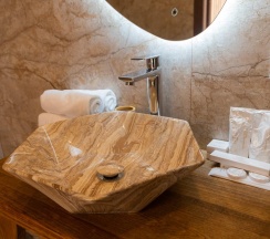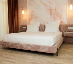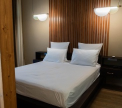 Авторский дизайн номера выполнен в изысканном современном стиле с применением экологичных материалов и рассчитан на комфортное проживание двух гостей. Здесь находится всё необходимое для прекрасного отдыха. Помимо широкой двуспальной кровати с ортопедическим матрасом и другой современной мебели, к услугам гостей SMART-TV, внутренний телефон и бесплатный Wi-Fi. Изюминка номера - парный санузел с двумя раковинами, оснащен душем, феном и высококачественным текстилем.