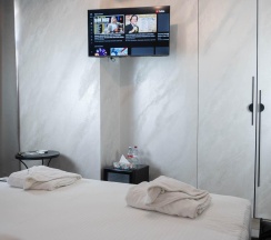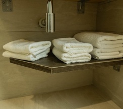 Не понравилось: Маленький номер с витражным окном на весь номер. Ощущение аквариума. Приходиться закрывать шторы, и быть без дневного света, чтобы все проходящие не разглядывали в каком халате ты вышел из душа, и что делаешь.