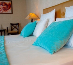 Каждая комната рассчитана на комфортное проживание двух гостей. Здесь есть всё нужное не только для отдыха, но и для плодотворной работы. Помимо широких двуспальных кроватей и другой мебели, к услугам гостей цифровое телевидение, внутренний телефон и бесплатный Wi-Fi. Туалетные комнаты оснащены душевыми кабинами.