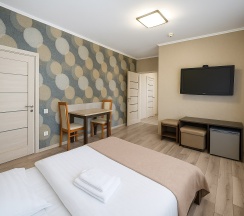 Кровать удобная, постельное бельё чистое и выглаженное. В ванной есть всё необходимое. Номер укомплектован и оборудован полностью для комфортного проживания. Приятно находиться.