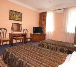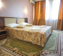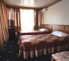 В номере: двуспальная кровать или 2 односпальные кровати, прикроватные тумбочки, стол, стулья, шкаф, холодильник,телевизор, телефон, фен, сплит-система, сейф, санузел с душем, комплект полотенец, минимальный набор rосметических принадлежностей.