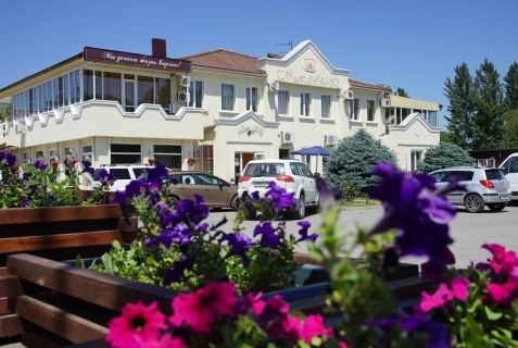 Остановились вчера с семьей после длительной дороги по пути у морю. Отличный номер для семьи из 4 человек с двумя детьми. Все, что надо есть: парковка во дворе, кондиционер, душ с горячей водой, фен, чайник, питьевая вода. Поели в кафе хорошую домашнюю еду. Из окна номера видно свою машину. Красивые розы во дворе . Выспались, поехали дальше. Рекомендую от всей души отель