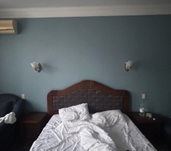 Остановились вчера с семьей после длительной дороги по пути у морю. Отличный номер для семьи из 4 человек с двумя детьми. Все, что надо есть: парковка во дворе, кондиционер, душ с горячей водой, фен, чайник, питьевая вода. Поели в кафе хорошую домашнюю еду. Из окна номера видно свою машину. Красивые розы во дворе . Выспались, поехали дальше. Рекомендую от всей души отель