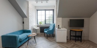 Антуражно. Находится за зданием рестопана Глупый француз. Но в целом это единый стиль и пространство. Чисто. Но есть запах в номерах сырости что ли. Типо неплохо проветривать перед гостями или какой то освежитель поставить. Есть бассейн на территории открытый. Чистый и с зоной отдыха. Есть фен в номере, кофе капсульный. Небольшой внутренний двор. В сезон конечно проблема с парковкой. Нет своей. Но по улице можно найти тк люди приезжают в ресторан. Завтраки включены, дают меню на выбор типо яичница с беконом или сырники. Всё очень вкусно. На машине близко к центру. Отдыхало много звёздных гостей судя по фото на ресепшне. Девушка админ очень привеливая и милая.